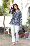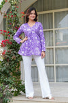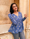Women’s Floral Printed V-Neck Flared Tunic – Blue