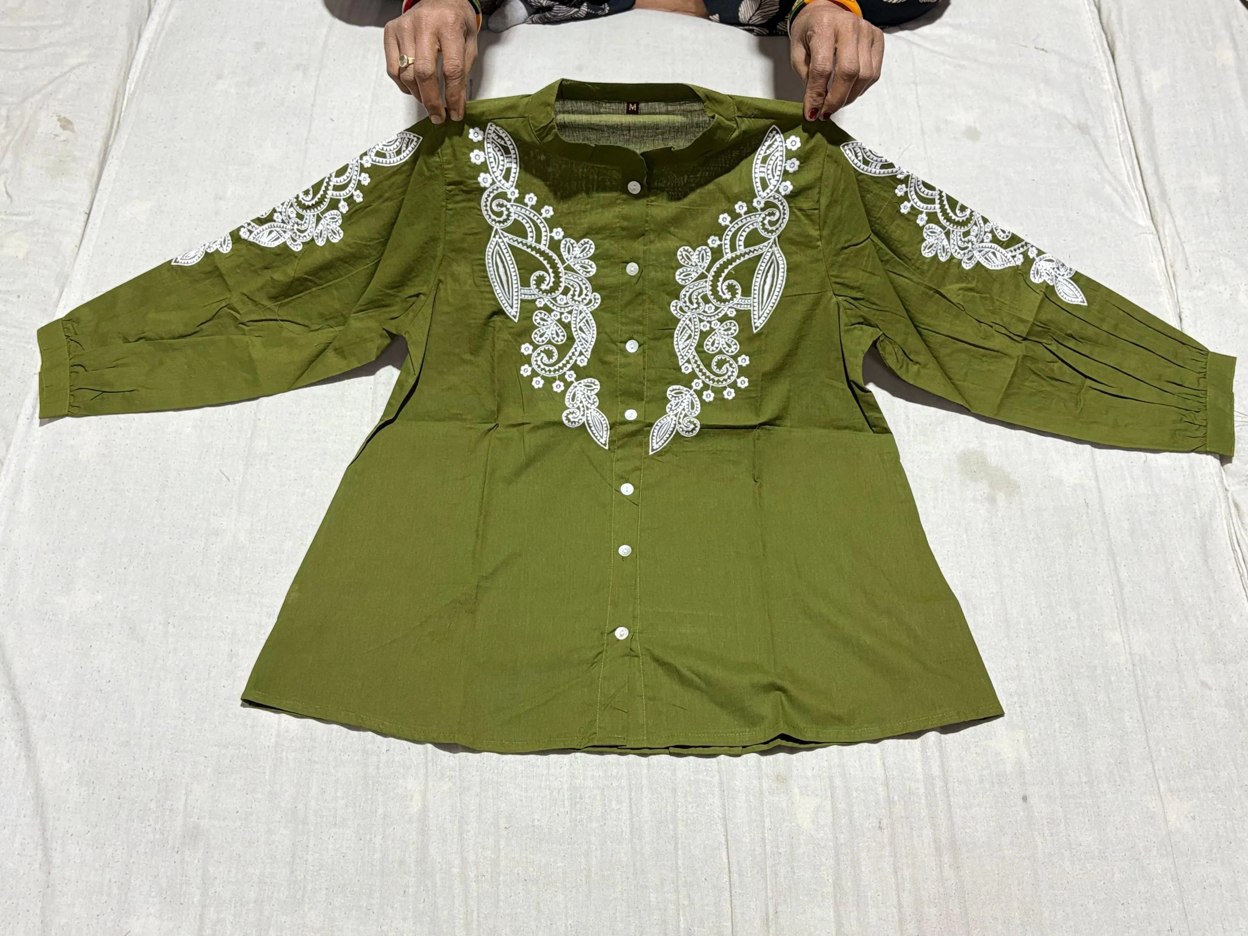 • Details: Intricate White Embroidery on Yoke and Sleeves